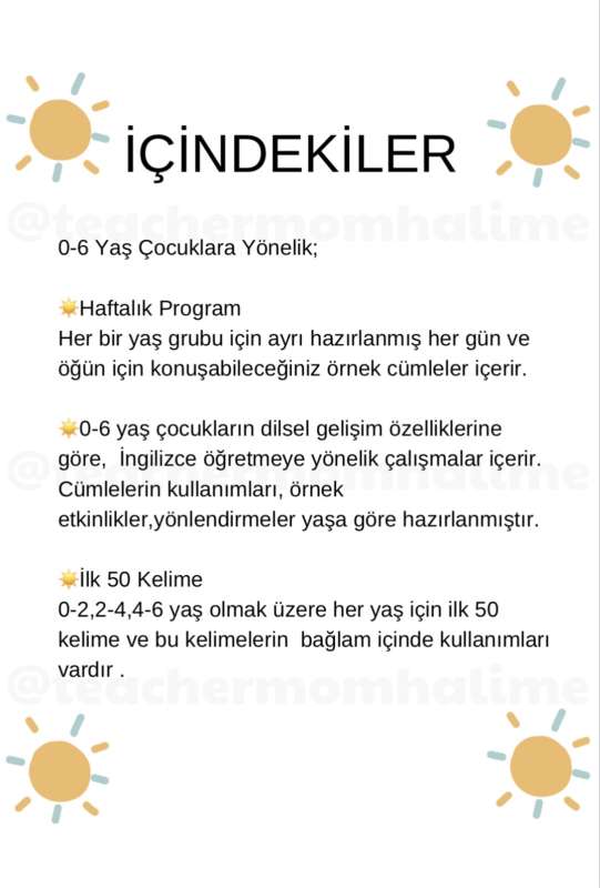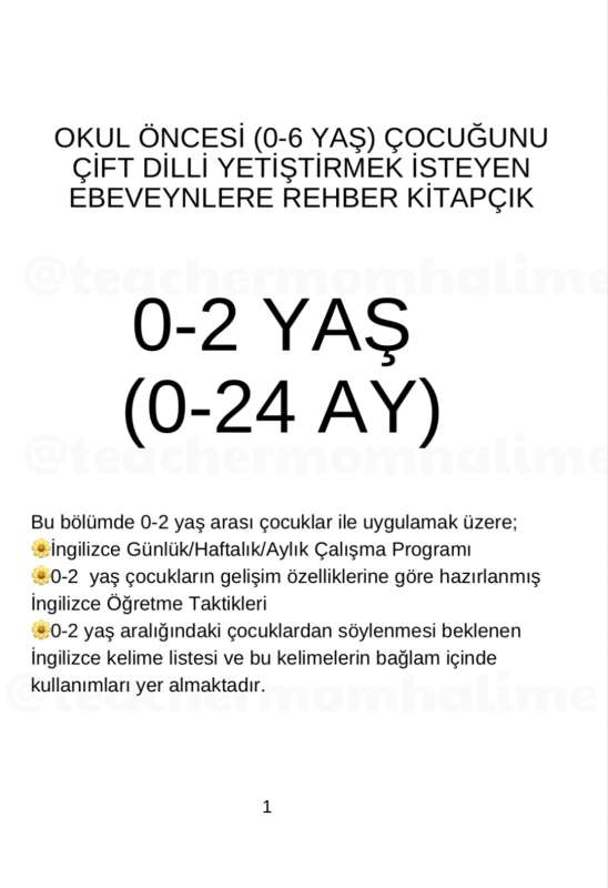Bu dijital içerik, 0-6 yaş çocuklara İngilizce öğretmek için özenle hazırlanmış bir rehber kitapçıktır. Kendi deneyimlerim ve uygulamalarım doğrultusunda hazırladığım yöntemler, hem evde anneler hem de okul öncesi öğretmenleri için pratik bir rehber sunar.