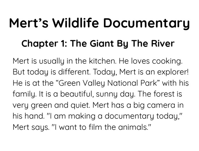 - Original Story: 3 Bölümlük, yapay zeka destekli modern görsellerle süslü “Mert’s Wildlife Documentary” hikayesi