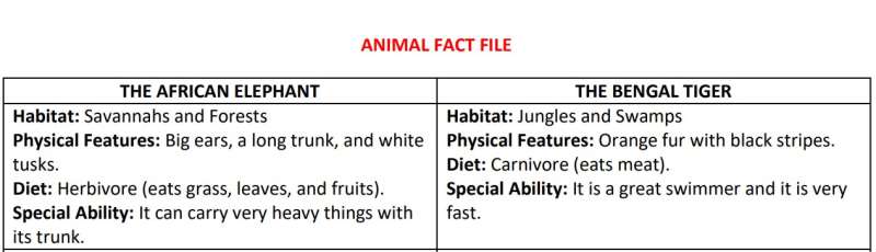 - Eylem Fiilleri: Hayvanların hareketlerini tanımlayan (climb, roar, hunt, gibi) dinamik kelimeler.